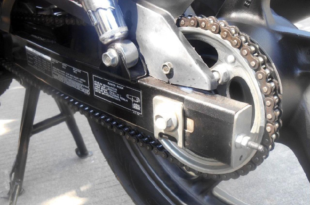 Rantau wajib dilumasi jika sudah menempuh jarak 500 km. Setelah motor menembus hujan dan rantai kotor, segera cuci rantai dan beri pelumas.