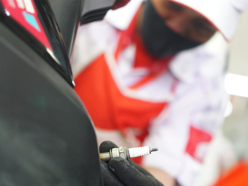 Busi sendiri merupakan komponen yang berfungsi untuk memantik api agar pembakaran mesin bekerja. Apabila busi pada sepeda motor sudah kotor atau bahkan melewati batas jarak pemakaian, sebaiknya diganti dengan busi yang baru. “Pergantian busi disarankan saat sepeda motor telah digunakan sudah menempuh jarak 8.000 km,” kata Ade.