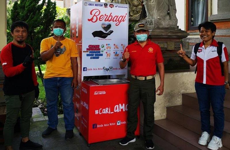 Paguyuban Honda Community Bali dan Honda ADV Indonesia (HAI) Bali chapter bersama Dealer Asia Motor dan Dealer Taman Agung Motor menyerahkan tempat cuci tangan portabel ke Kepala Kesatuan Polisi Pamong Praja Kab. Badung (11/4).