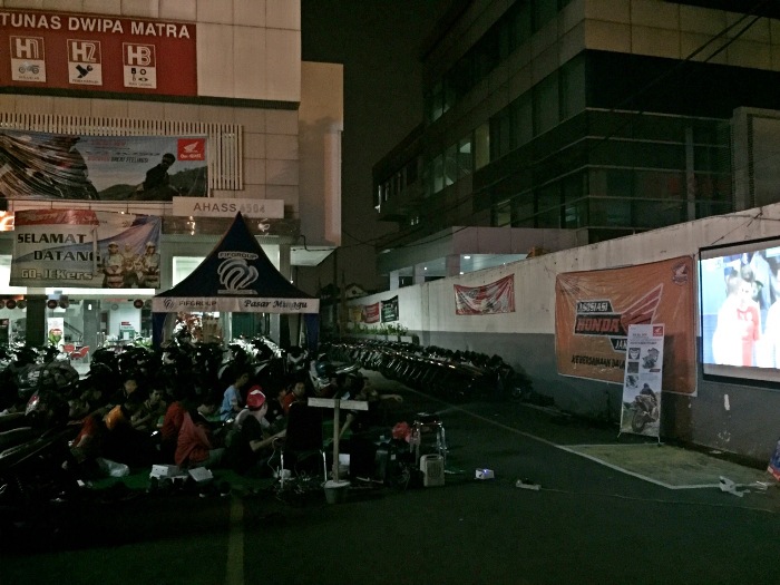 Jakarta, 30 Juni 2016 – Sekumpulan Komunitas Honda tipe cub atau bebek yang tergabung dalam Asosiasi Honda Jakarta (AHJ) yang diberi julukan Bebek Bangors mengikuti nonton bareng kompetisi sepak bola Piala Eropa yang diadakan oleh PT. Wahana Makmur Sejati di halaman parkir depan Dealer Tunas Dwipa Matra Tebet Jakarta Selatan pada (25/06) Sabtu malam.