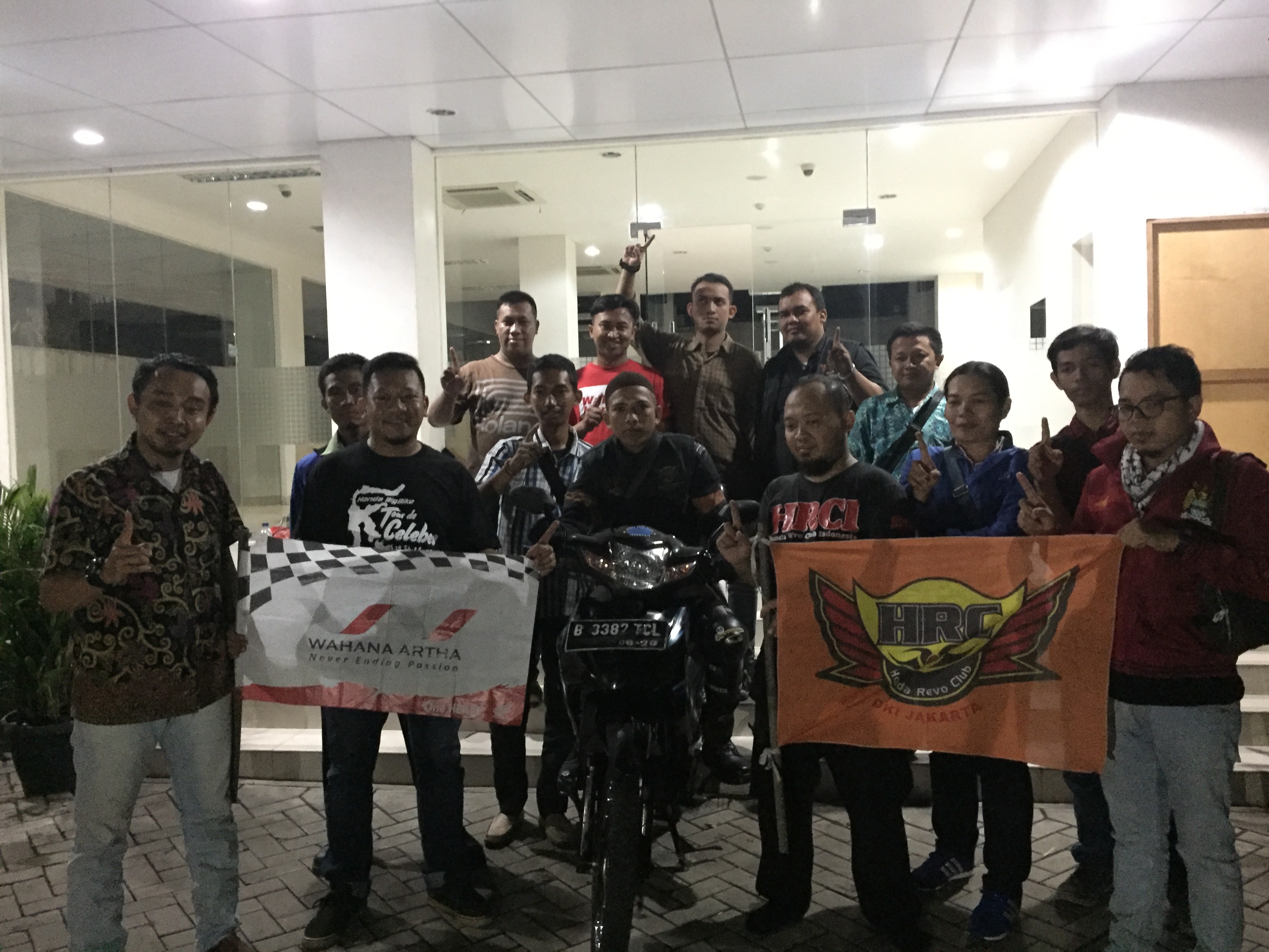 Anggota HRC tersebut bernama Bismo Ananto Aji yang akrab disapa dengan Engkong, yang saat ini juga menjabat sebagai Presiden HRCI (Honda Revo Club Indonesia). Pria yang masih bujang tersebut akan melakukan solo touring menuju Makassar Sulawesi.