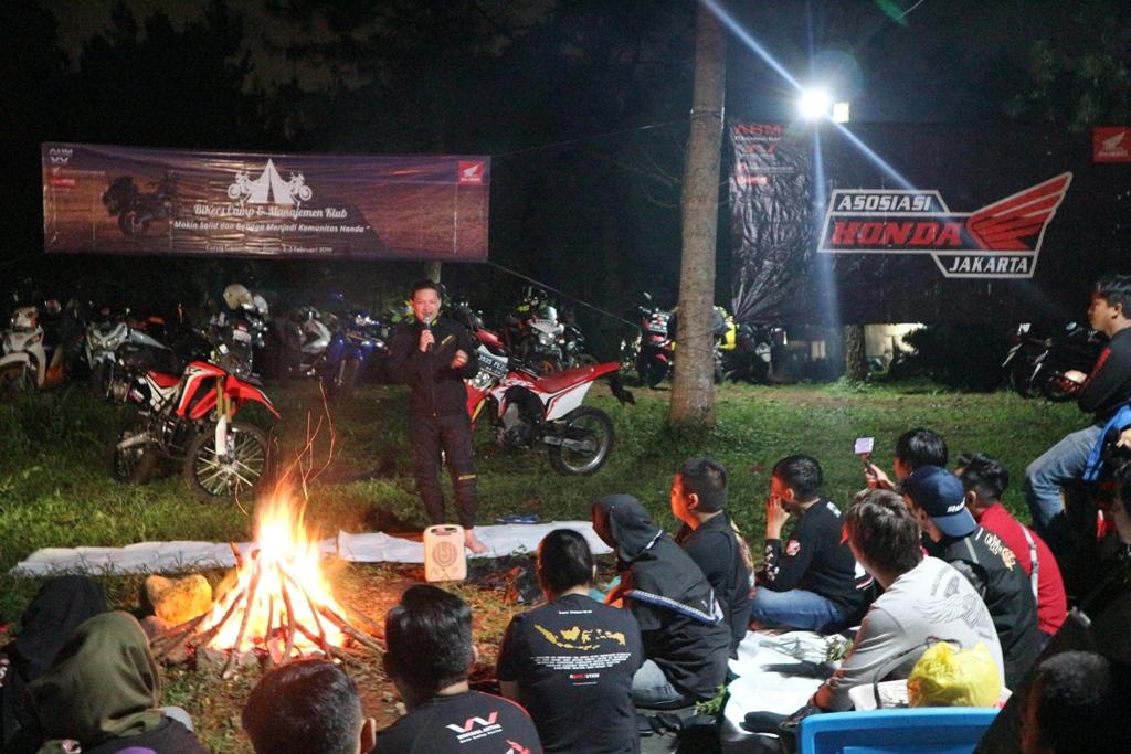 Jika selama ini turing hanya menuju tempat yang biasanya hotel, villa dan lain sebagainya, untuk menambah kesan dan pengalaman baru, Wahana ajak 50 anggota komunitas yang tergabung dalam Asosiasi Honda Jakarta (AHJ) ikuti kegiatan bertema ‘ Bikers Camp & Management Club Honda Community ‘. Selain melakukan turing, pada kegiatan ini juga diisi beragam kegiatan menarik seperti camping dan sharing terkait pengelolaan komunitas yang baik disampaikan langsung oleh ‘penggila’ roda dua yang telah melakukan turing di 56 negara di berbagai belahan dunia, Mario Iroth.