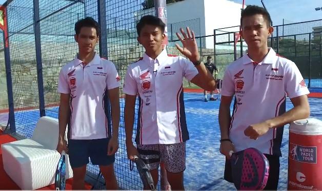 Mario Suryo Aji, Gerry Salim, dan Andi Gilang meninggalkan motor mereka sejenak untuk mencoba pengalaman baru, yaitu padel, olahraga yang belum pernah mereka coba sebelumnya.