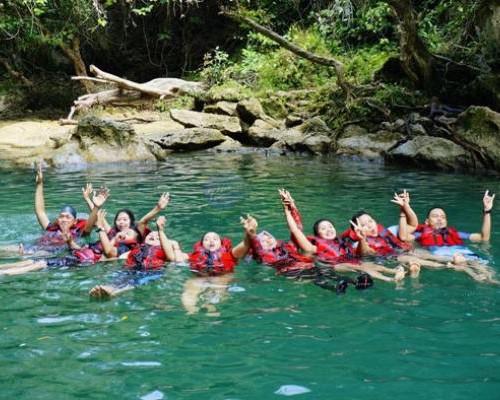 Setelah pintu masuk perjalanan dilanjutkan sampai ke titik tujuan di hulu sungai sepanjang perjalanan wisatawan  akan disuguhkan dengan pepohoan yang rindang.