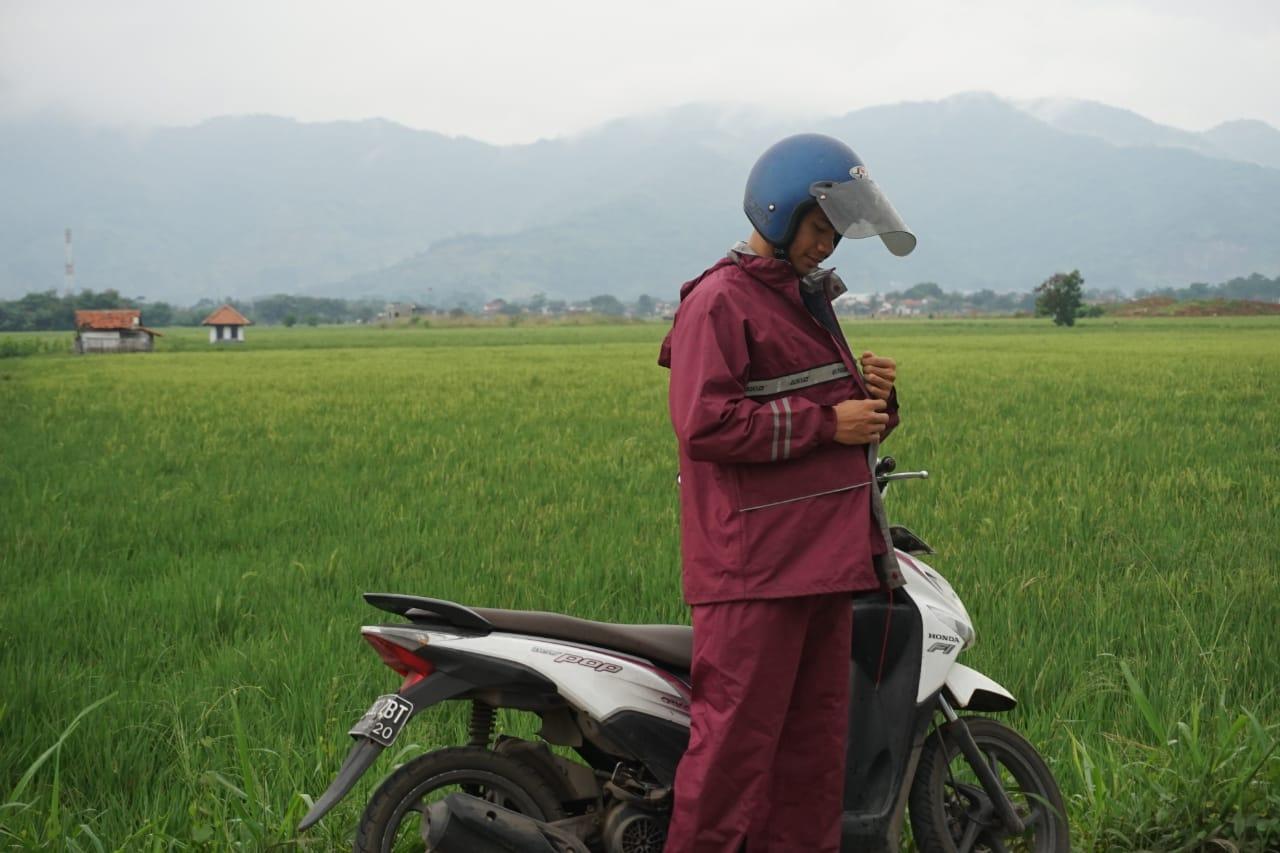 Jika harus keluar rumah dan berkendara menggunakan sepeda motor maka wajib menggunakan perlengkapan berkendara seperti Helm, Masker, Jaket, dan Sarung Tangan untuk selalu tetap #Cari_Aman. Selain perlengkapan berkendara tersebut, pengendara wajib menyiapkan jas hujan yang dipakai untuk melindungi tubuh saat hujan ketika berkendara.
