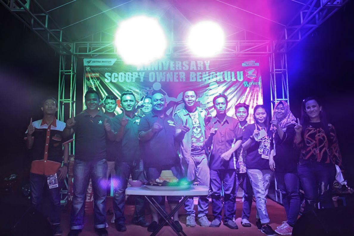 Bengkulu - Menemani pecinta Honda Scoopy di Provinsi Bengkulu, Scoopy Owner Bengkulu (SOB) yang merupakan komunitas pemilik Honda Scoopy merayakan Hari Jadinya yang pertama kali. Puncak kemeriahan acara yang digelar Minggu malam 29 April 2018 terjadi saat DJ mulai menampilkan peformanya diatas panggung. Pengunjung juga disuguhi dengan penampilan Organ tunggal yang turut memeriahan suasana di Stadion Semarak Bengkulu.