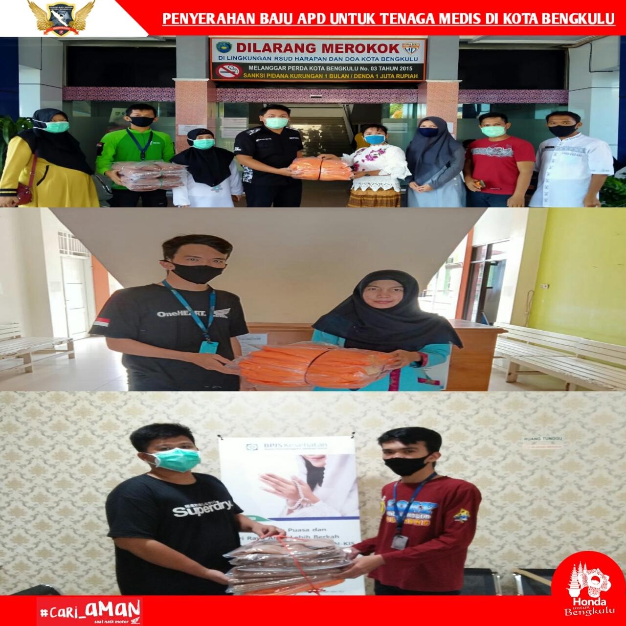 Selasa (5/5/2020), Honda Bengkulu bekerja sama dengan Paguyuban Motor Honda Bengkulu dan Dompet Dhuafa Bengkulu dalam membantu membagikan APD kepada tenaga medis yang sedang menjadi garda terdepan melawan Virus COVID-19 ini, selain itu Honda Bengkulu juga membagikan APD ke Klinik Kesehatan. Dengan demikian adanya bantuan APD yang diberikan, dapat membantu tenaga medis untuk menjaga kesehatan mereka yang setiap hari kontak langsung dengan pasien yang terpapar Virus COVID-19 ini.
