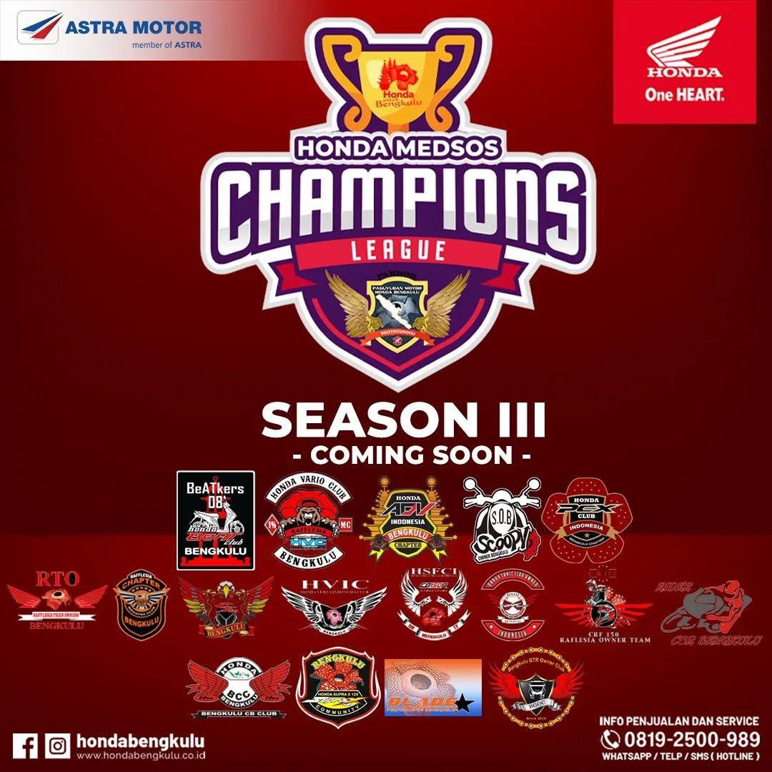 BENGKULU- PT. Astra International Tbk - Honda Bengkulu bersama seluruh Komunitas Honda yang tergabung di dalam Paguyuban Motor Honda Bengkulu kembali menyelenggarakan kompetisi Medsos dengan tajuk “Honda Medsos Champions League”.