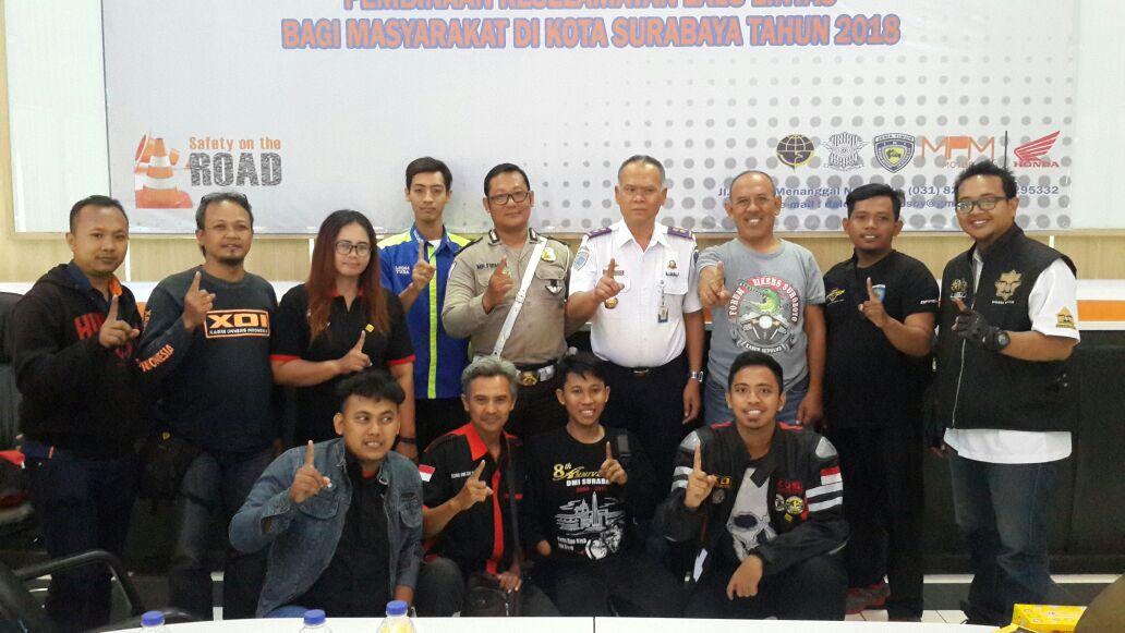 Perhelatan kampanye safety riding digencarkan oleh pihak terkait seperti Kepolisian, Dishub, serta komunitas yang sadar akan keselamatan dijalan raya. Di kantor DISHUB Kota Surabaya digelar Pembinaan Safety Riding Untuk Warga Kota Surabaya Bersama Komunitas Bikers Suroboyo Kamis 15 Februari 2018 waktu lalu. Dihadiri total 48 peserta yang menghadiri acara tersebut. Eits yang patut diapresiasi rek, turut hadir pula 2 orang perwakilan komunitas motor difabel (Spesial) yang antusias untuk mengikuti acara tersebut.