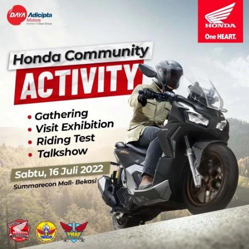 Tepatnya pada tanggal 16 Juli 2022 acara ini akan digelar, di acara tersebut kawan-kawan bisa kopdar bareng kawang-kawan pengguna sepeda motor Honda di bekasi sekaligus melihat dari dekat sepeda motor terbaru dari Honda yaitu New Honda ADV 160.