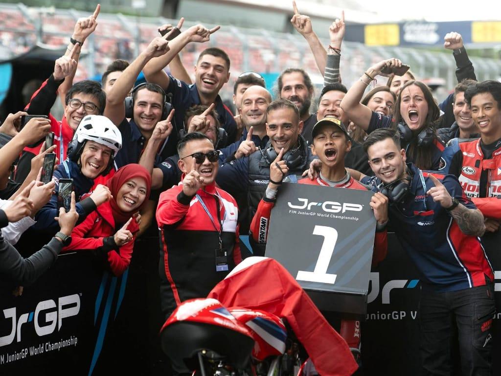 Jakarta – Dua pebalap muda binaan PT Astra Honda Motor (AHM) kembali menorehkan hasil membanggakan pada ajang FIM JuniorGP World Championship seri keenam yang digelar di Circuit de Barcelona-Catalunya, Spanyol, Minggu (2/11). Setelah Fadillah Arbi Aditama raih juara Moto3 JuniorGP Barcelona di 2023, Indonesia Raya kembali berkumandang lewat kemenangan M. Kiandra Ramadhipa yang berhasil menuntaskan balapan secara dramatis di kelas European Talent Cup (ETC), sementara Veda Ega Pratama tampil konsisten dalam dua race dengan finis di posisi enam dan delapan pada kelas JuniorGP.