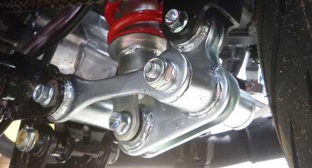 Suspensi tipe pro-link ini menggunakan laher bambu dan bertumpu pada as. Kalau kering tentu akan jadi cepat aus dan timbul suara berdecit, meski di luarnya sebagai pengaman ada seal.