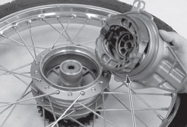 Membersihkannya sama saja dengan motor-motor lain yang masih pakai rem teromol. Setelah panel kampas rem terpisah dari teromol dan as roda, ruang teromol disemprot angin bertekanan biar debunya hilang. Biar maksimal, sikat juga pakai kuas.