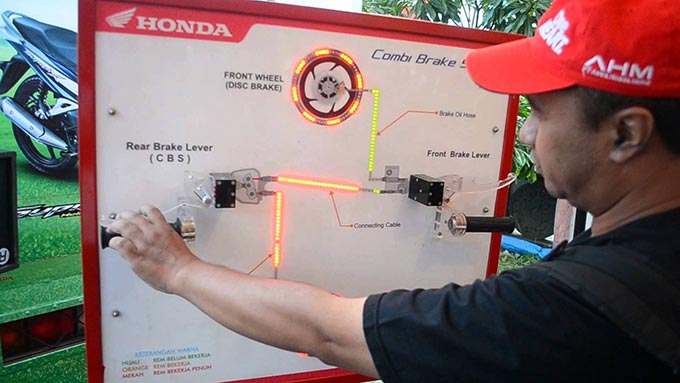 Kenapa begitu? Karena teknologi yang diterapkan pada CBS masih menggunakan sistem mekanis. Artinya, CBS yang terdapat pada Honda Vario Techno dan BeAT FI menggunakan kabel konektor untuk menghubungkan rem depan dan belakang.