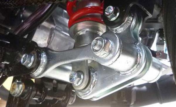 Suspensi tipe pro-link ini menggunakan laher bambu dan bertumpu pada as. Kalau kering tentu akan jadi cepat aus dan timbul suara berdecit, meski di luarnya sebagai pengaman ada seal.